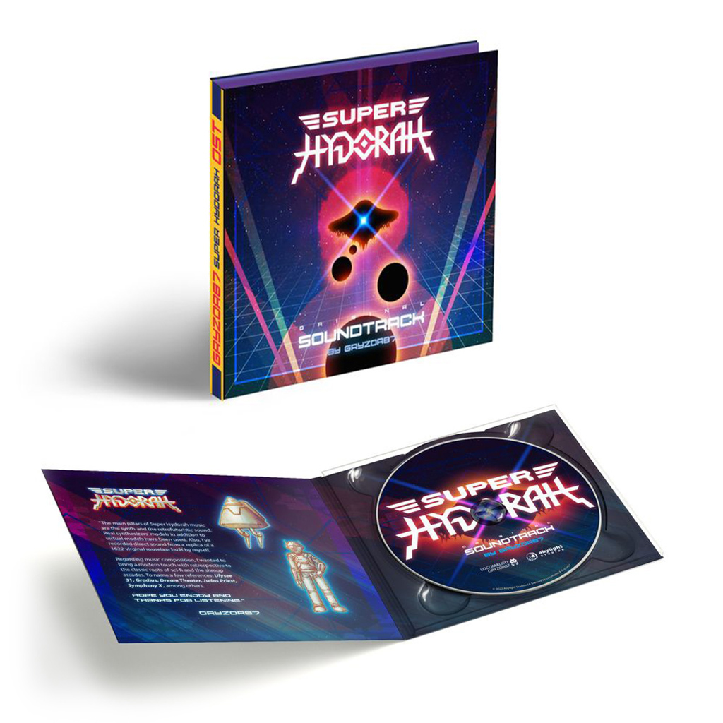 La edición de coleccionista de Super Hydorah para Nintendo Switch incluye la banda sonora original completa (¡y algunas pistas extra!), para esos momentos en los que quieres escuchar sus melodías sin el sonido de mil láseres y explosiones a tu alrededor.